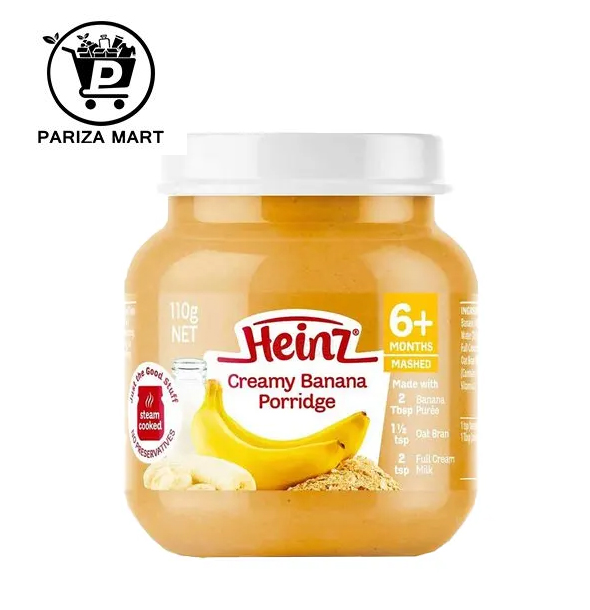 Description: Heinz velvety banana porridge is smooth, rich and delightful food with pounded surface. Contains no counterfeit tone, flavors or additives. Appropriate for 6+ months children.