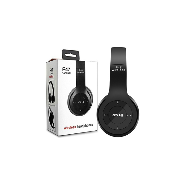 P47 Wireless Headphone with FM Stereo Radio – Black